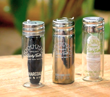 Hilo dental de bambú orgánico - Hilo dental de carbón activado en frasco de vidrio de 30 m/33 yardas