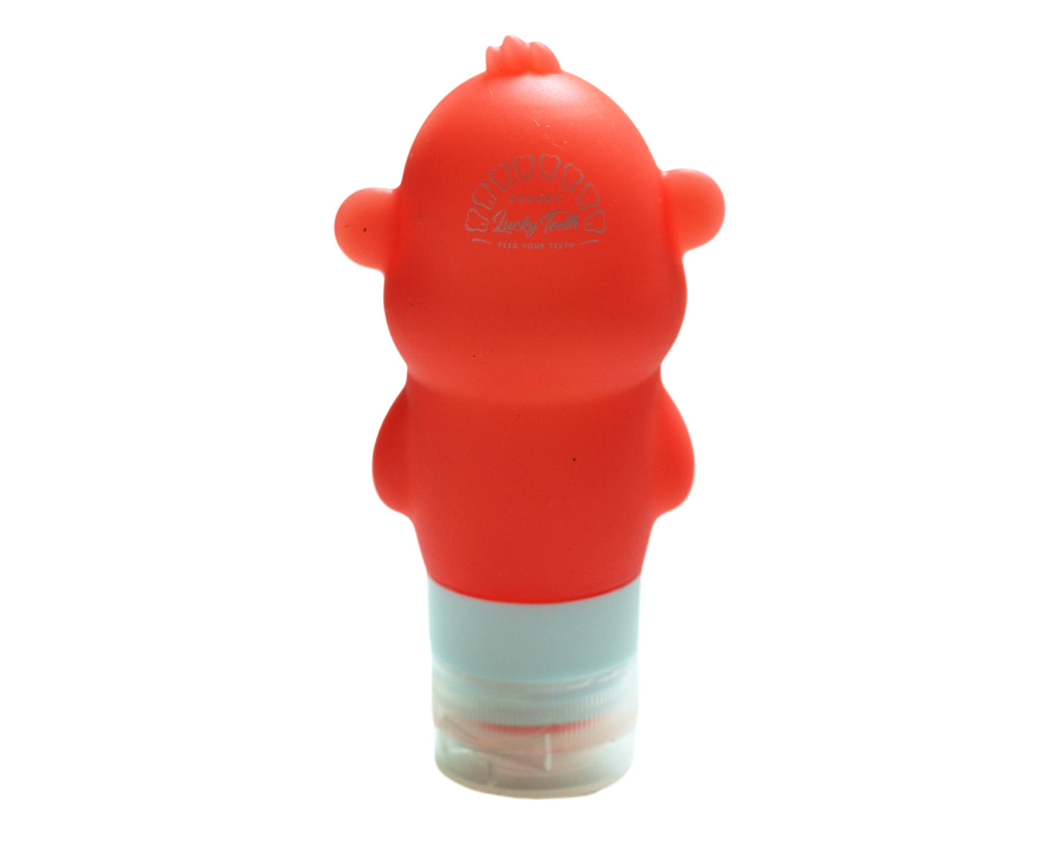 1. Con los dedos, aprieta suavemente todo el contorno del mono para mezclar bien la pasta de dientes. Repite el procedimiento cada vez que la uses. TEN CUIDADO porque puede salir mucha pasta al apretarla.